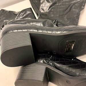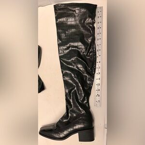 Stylish black over the knee boots with a croc-embossed texture. New in Box, never worn. Perfect for a wow look!