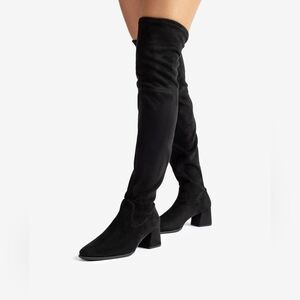 Chic and versatile over-the-knee boots. Sleek black design. Ideal for any outfit.