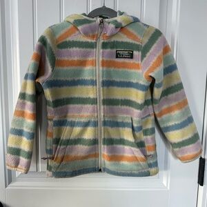 Vibrant stripes in soft fleece. Perfect for warmth and style. Easy zip closure.