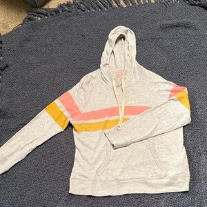 Gray Hoodie with Pink and Yellow Stripes