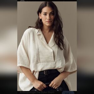 ANTHROPOLOGIE Cream Blouse Womens The Dilon Short Sleeves Wide-packet CREAM 2X