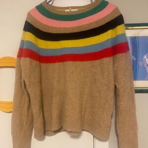 Vibrant crew neck sweater by Boden. Features bold stripes in multiple colors. Perfect for a stylish, casual look.
