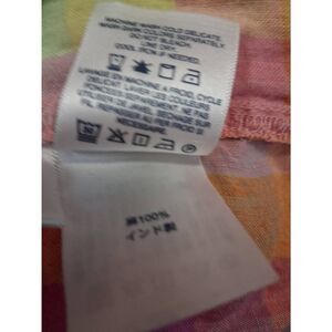 Lands end womens 1xl tab sleeve 100% linen shirt blouse plaid pink yellow