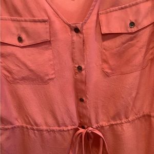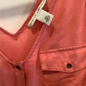 Banana Republic salmon pink v-neck 100% silk sleeveless top 3/4 button Sz XS