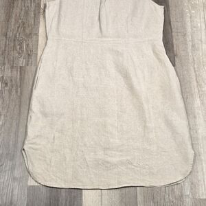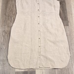 L.L. BEAN 100% Linen Pintuck Sleeveless Shirt Midi Dress Size 14 Beige. EUC. Approximate measurements are: