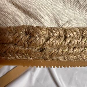 These espadrilles feature a charming cream fabric adorned with a gold sunflower motif, offering a perfect blend of elegance and casual style. The traditional jute soles provide a classic Mediterranean look, while the slip-on design ensures easy wear for warm weather occasions.