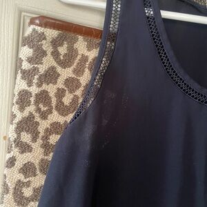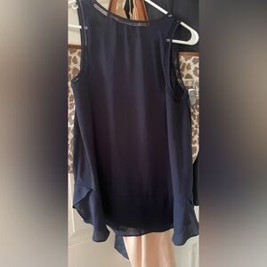 Chic dark blue sleeveless blouse from LOFT. Features delicate detailing. Perfect for versatile styling.