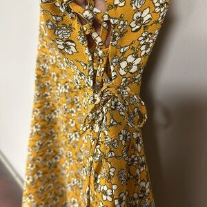 Super Cute Divided by H&M Mustard Floral Sleeveless Dress US Size 10, Side Ties
