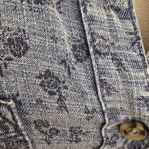 Soft washed lightweight denim with a subtle ditsy floral print throughout. Features button front closure, short sleeves, chest pockets, side pockets, and a raw frayed hem for an effortless boutique look.