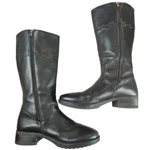 Black leather calf high riding boots from L.L. Bean. Stitched accent, zippered side closure, slight heel, rounded toe. See photos!
