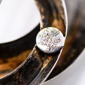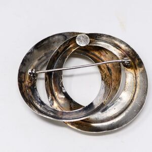 Elegant vintage brooch with interlocking circles design, crafted in sterling silver by Jordan.