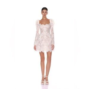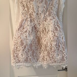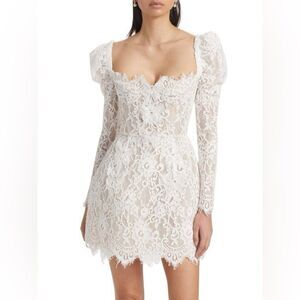 NWOT BRONX AND BANCO Colette White Lace Long Sleeve Mini Wedding Bridal Dress