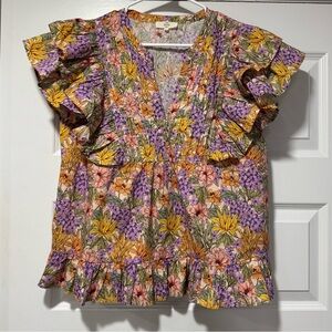 Colorful floral design with playful ruffles. Perfect for a stylish look.