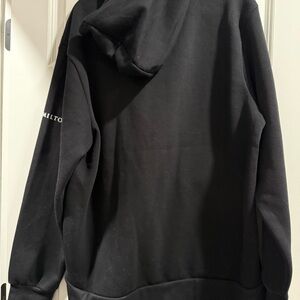 Hamilton hoodie in classic black. Features a white label with brand details. New without tags