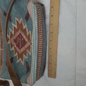 Catchfly Studio Aztec Rug Southwest Beaded Boho Aqua Brown Leather Crossbody Bag