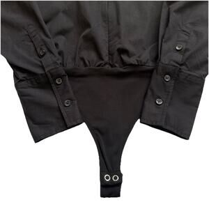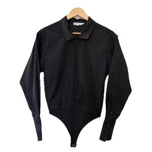 Good American Zip Front Poplin Bodysuit Womens Small Black Long Sleeves