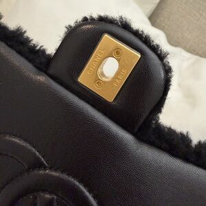 CHANEL Shearling Teddy Lambskin Black Medium Flap Bag