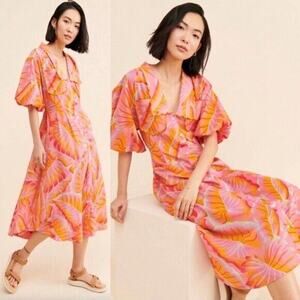 Farm Rio Bright Forest Button Front Midi Dress Tropical Orange Size S B275