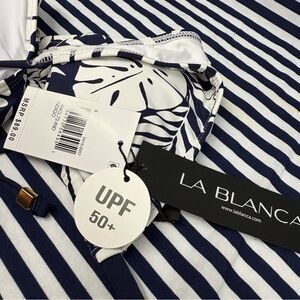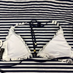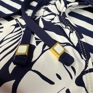LA BLANCA Navy White Leaf Print Bikini Top Size 4