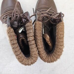 Womens Brown Faux Leather Lace Up Combat Boots w Faux Lambs Wool Knit Size 9