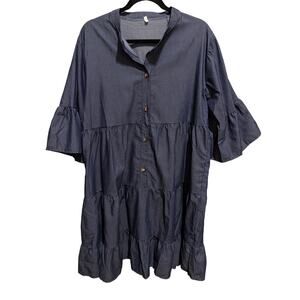 Unbranded Lightweight Blue Jean Babydoll Dress Ruffle Sleeve Plus Size 2X