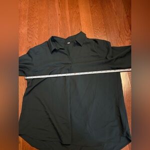 Uniqlo Forest Green Rayon Skipper Collar 3/4 Sleeved Blouse. Size large.