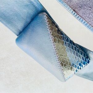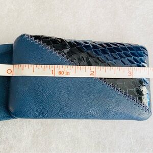 Rare and unique vintage women’s genuine leather and snakeskin belt in a beautiful shade of dark royal blue. The leather is super soft.