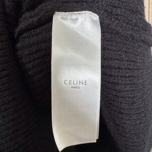 Authentic Celine ribbed wool oversized black crew neck sweater with white Celine patch. Features dropped shoulders and long sleeves. 100% wool, made in Italy. Worn multiple times and shows some signs of wear, but still has plenty of life left! Please look at photos for condition. Size tag was cut for comfort, I believe it was either a small or medium. Retail $1400. Dimensions are below.