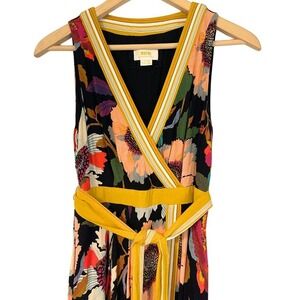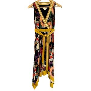 Anthropologie Maeve Botanica Faux Wrap Dress Size 0P Bold Floral Boho Hanky Hem