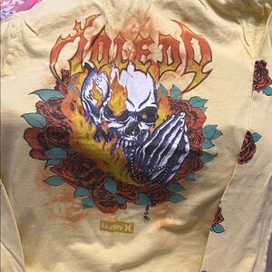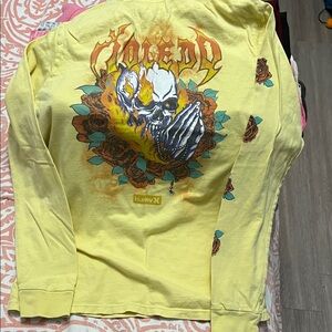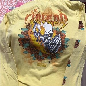 Yellow Hurley Skull 💀 long sleeve 🌹 roses down left sleeve Size Small