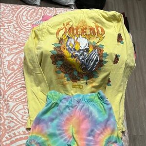 Hurley skull yellow long sleeve Sm.5 Tie-Dye Shorts🏝️