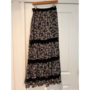 Lost Wander Fairy Grunge Lace Tiered Maxi Skirt Women's Medium Whimsigoth Witchy