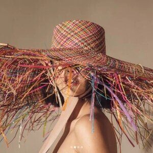 Brand new with tags Sensi Studio Women's Pink Fiesta Frayed Large-Brim Hippie Sun Hat. Size M, MSRP $248