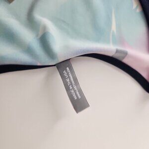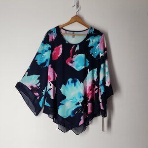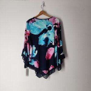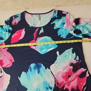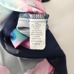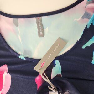 Last Tango asymmetrical top size XL gorgeous floral print stretch chiffon trim