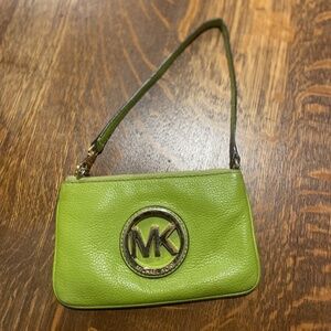 This is a lovely Michael Kors Fulton Pebble Leather Lime Green Wristlet. There is a tiny pen mark on the front which is barely visible; otherwise it is in great condition.