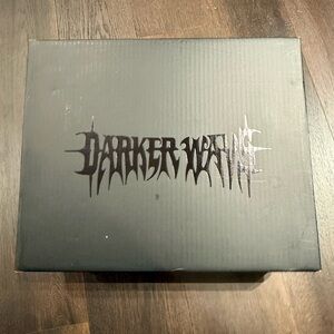 Bold black combat boots with chunky platform. Features edgy buckle straps and rugged sole.