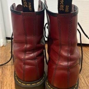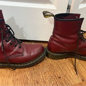 Dr. Martens Burgundy Leather Boots with Yellow Stitching