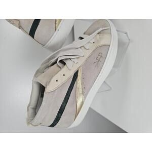 Step out in style with these chic FP mid-top sneakers. Featuring a soft beige suede exterior with eye-catching gold and green accents, these shoes blend casual comfort with a trendy edge. Perfect for everyday wear or adding a unique touch to your outfit. The cushioned insole ensures comfort all day long, while the durable sole offers great traction. A must-have addition to your shoe collection!