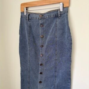 Stylish denim midi skirt with a button-front design. Perfect for casual outings.
