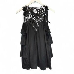 Carolyn Taylor Black Lace Tiered Cardi Vest