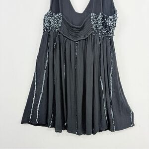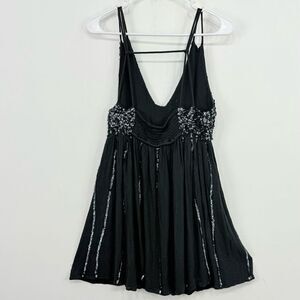 Intimately Free People Glitter Girl Gray Black Sequin Smock Back Mini Slip Dress
