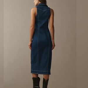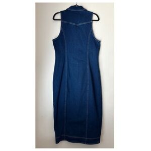 Pilcro Fitted Dark Denim Midi Dress Size XL Blue Stretch Double Ended Zipper