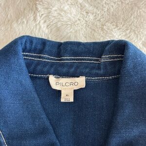*This midi dress by Pilcro is crafted from 82% cotton, 13% lyocell, 4% elastomultiester, and 1% elastane. It features chest patch pockets, seam details, and a front double ended zipper. Contrast stitching. Contemporary, western, country, festival, stretch, versatile, modest, minimalist, worn on tv.