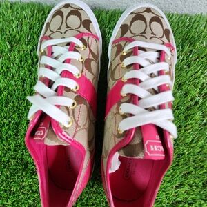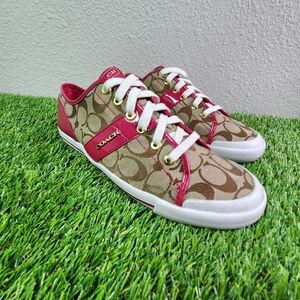 Coach Signature C Canvas Pink Patent Leather Sneakers Women’s Size 11