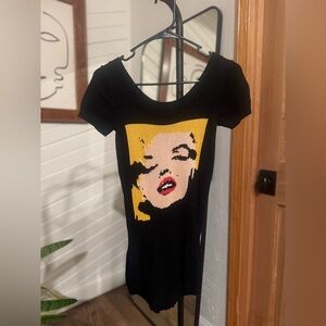 Y2K Betsy Johnson black knit romper featuring Marilyn Monroe. Black button closure at bottom.