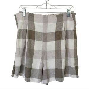 Versona NWT Checkered Plaid Linen Blend High Rise Pull On Shorts Size Large