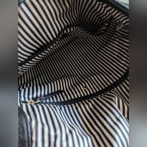 -Striped interior with 2 pockets and zippered pocket