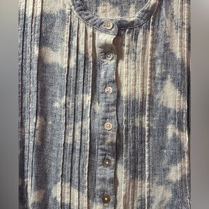 Faherty Sky Blue Tie Dye Linen Blend Shirt Dress Size Small summer beach resort