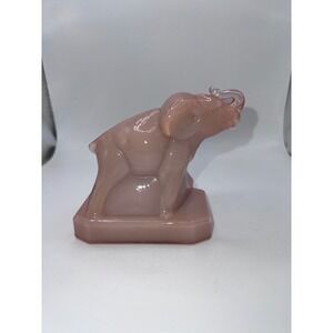Vintage Boyd Glass Zack The Elephant Pink Slag Glass Figurine Tusk Up Animals
