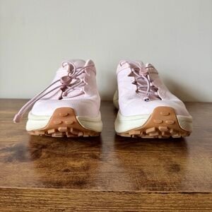 HOKA ONE ONE Women’s Transport sneakers in Cosmic Pearl / Oat Milk colorway, size 8B.